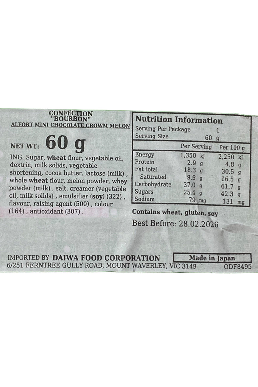 BOURBON Alfort Mini Chocolate Crown Melon 60g (12pc X 5g)