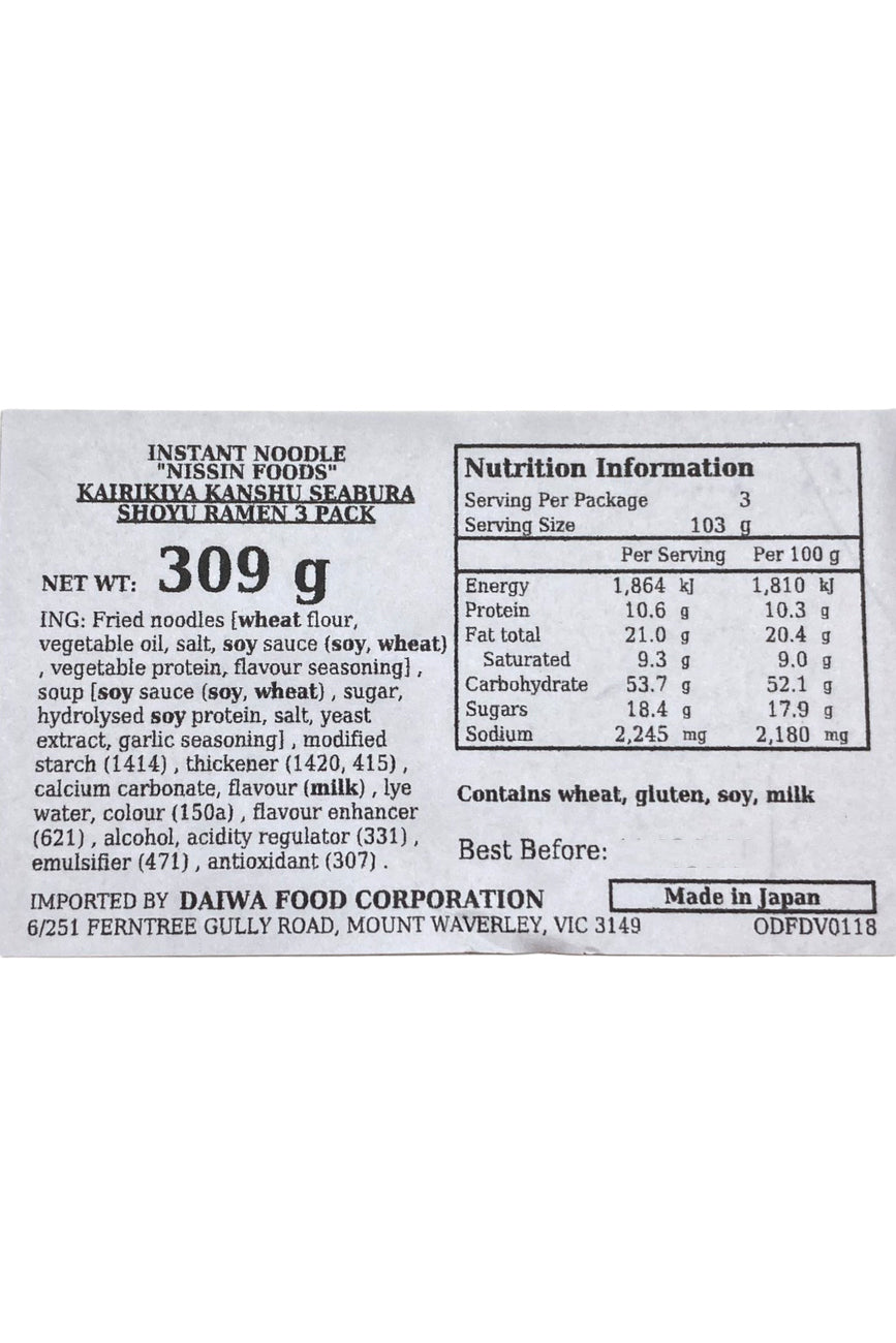 NISSIN Seabura Shoyu Ramen by Kairikiya 309g (103gX3pc)