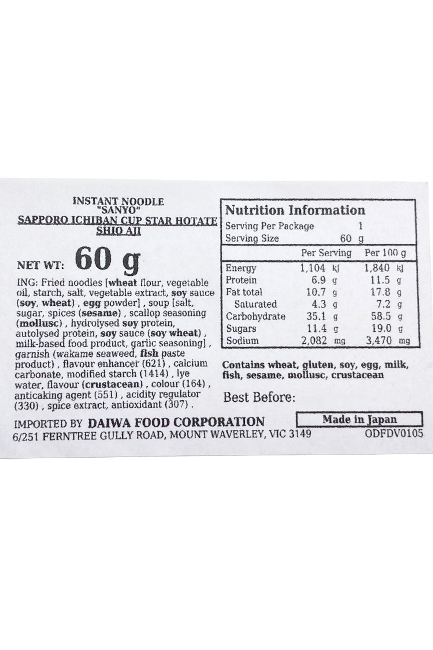 SANYO Sapporo Ichiban Cup Star Hotate Shio 60g
