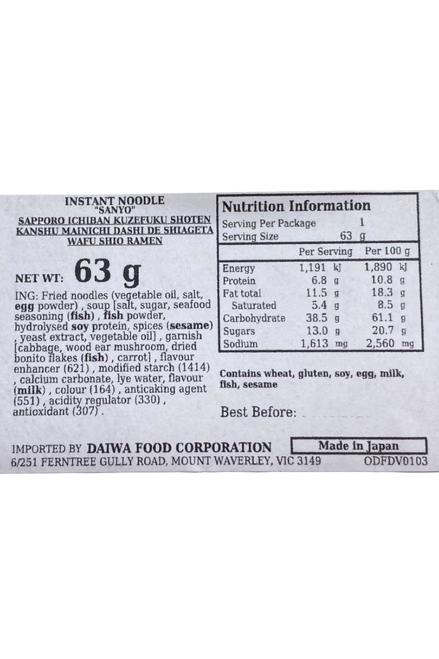 SANYO Sapporo Ichiban Mainichi Dashi Shio Ramen 62g