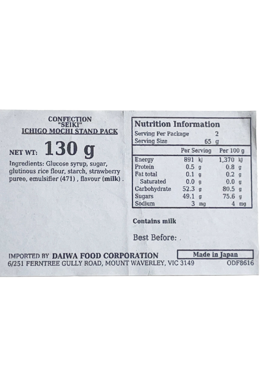 Sweet and fragrant strawberry flavor is encapsulated in soft daifuku mochi. Individually wrapped.