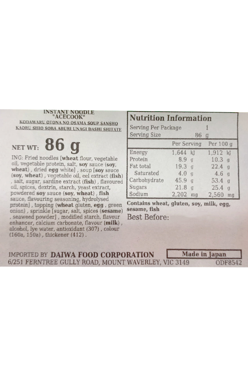 ACECOOK Sansho Kaoru Shio Soba Aburi Unagi Dashi Shitate 86g