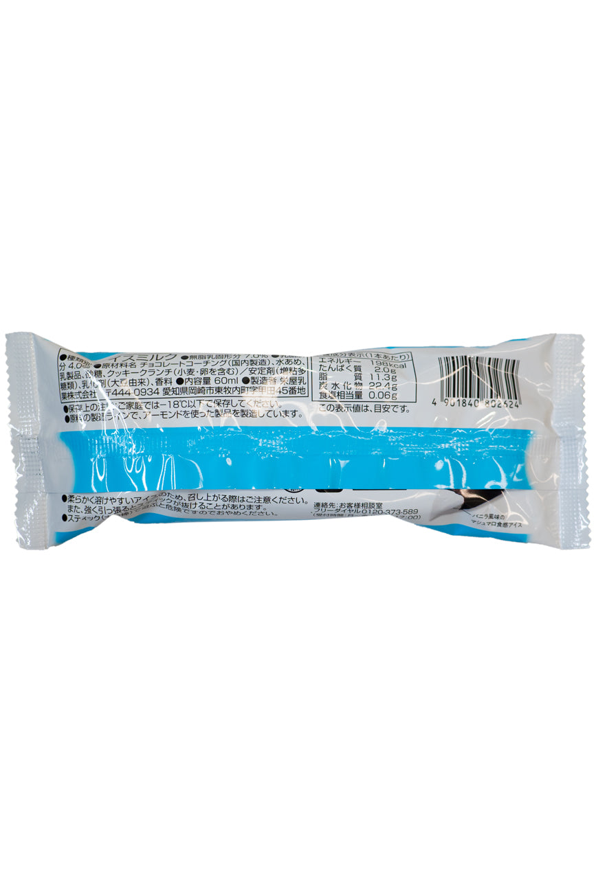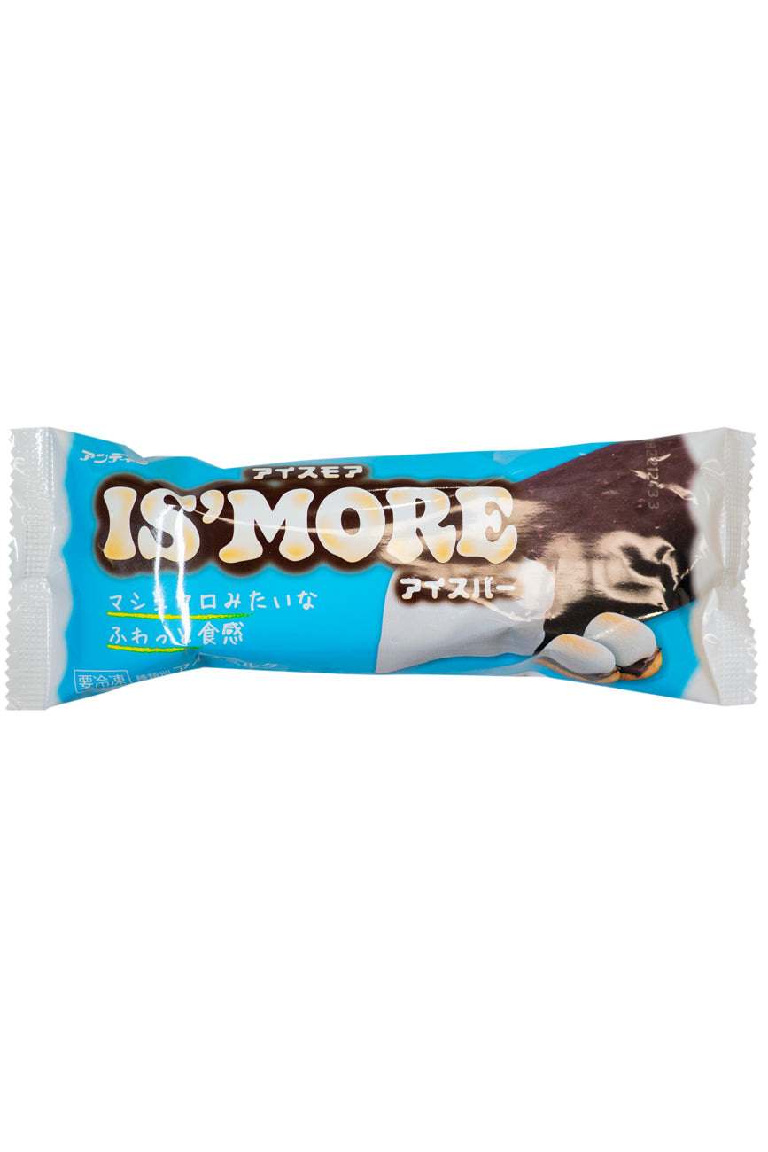 An ice cream bar with a marshmallow texture. This appealing ice cream bar combines fluffy marshmallow-textured ice cream with chocolate containing cookies, creating a taste reminiscent of s'mores. The product name, Ice More, is of course a combination of the words ‘ice cream’ and ‘s'mores.’