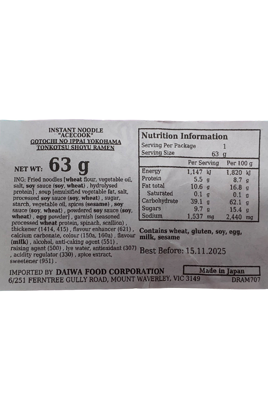 ACECOOK Gotochi no Ippai Yokohama Tonkotsu Shoyu Ramen 63g