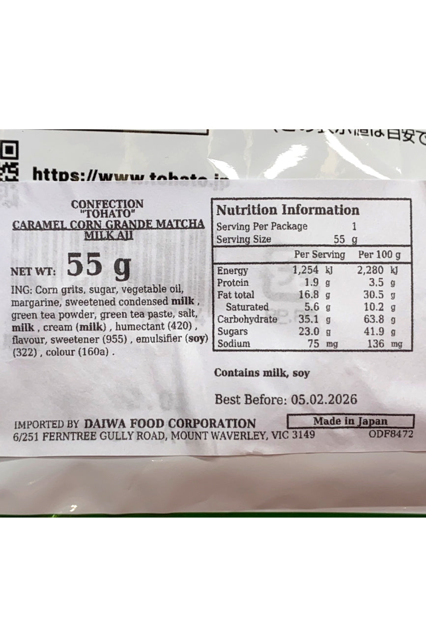 TOHATO Caramel Corn Grande Matcha Milk Aji 55g