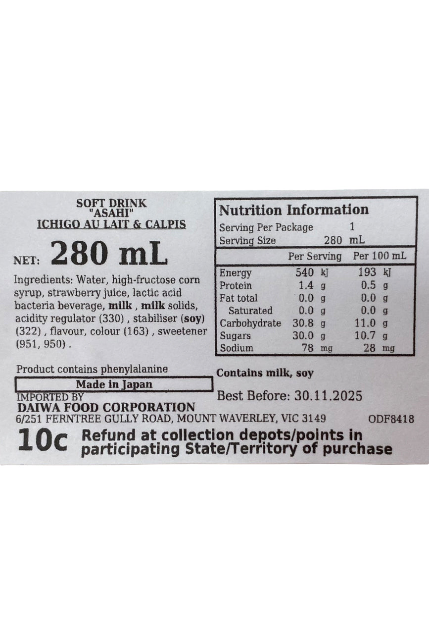 ASAHI Ichigo Au Lait & Calpis 280ml