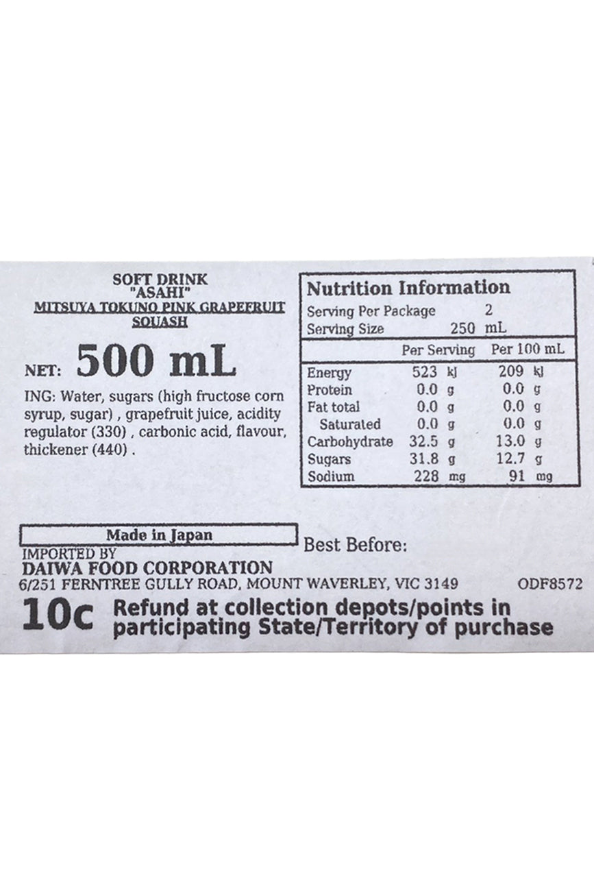 ASAHI Mitsuya Tokuno Pink Grapefruit Squash 500ml