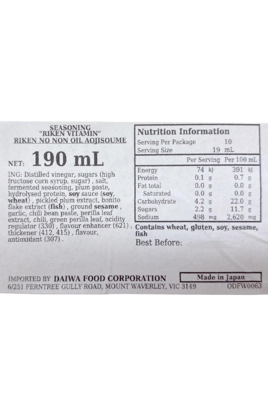 RIKEN no Non-Oil Aojiso Ume Dressing 190ml