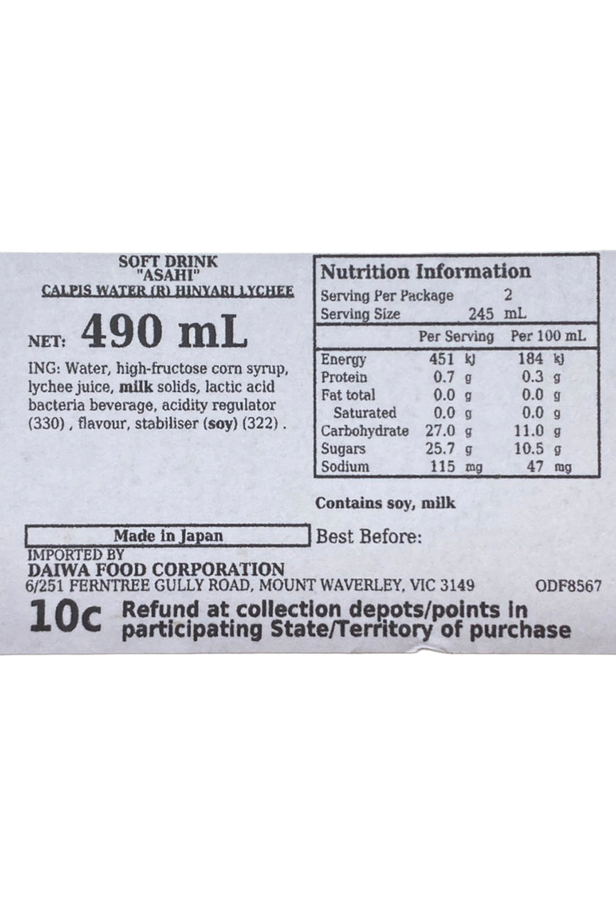 ASAHI Calpis Water Hinyari Lychee 490ml