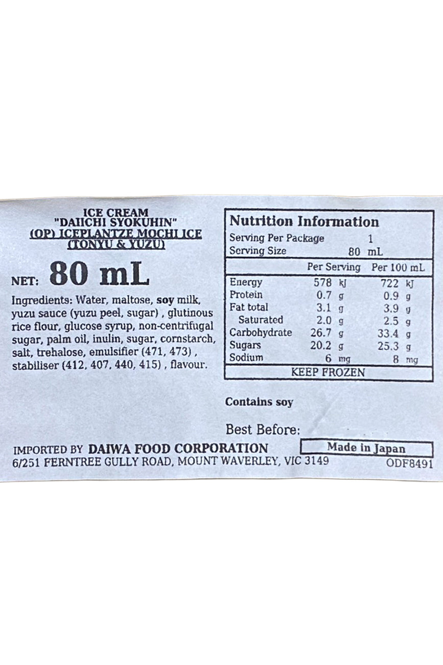 DAIICHI Iceplantze MOCHI Ice Tonyu & Yuzu 80g