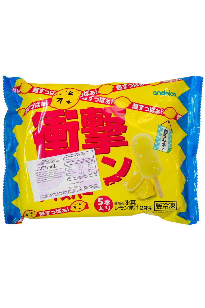 日本の暑い夏にはこれぐらいの衝撃がちょうどいい! レモン果汁を29%配合した暑さが吹き飛ぶようなすっぱさのアイスバー。 粒ラムネ入りで食感も楽しい、5本入りのマルチパックです。