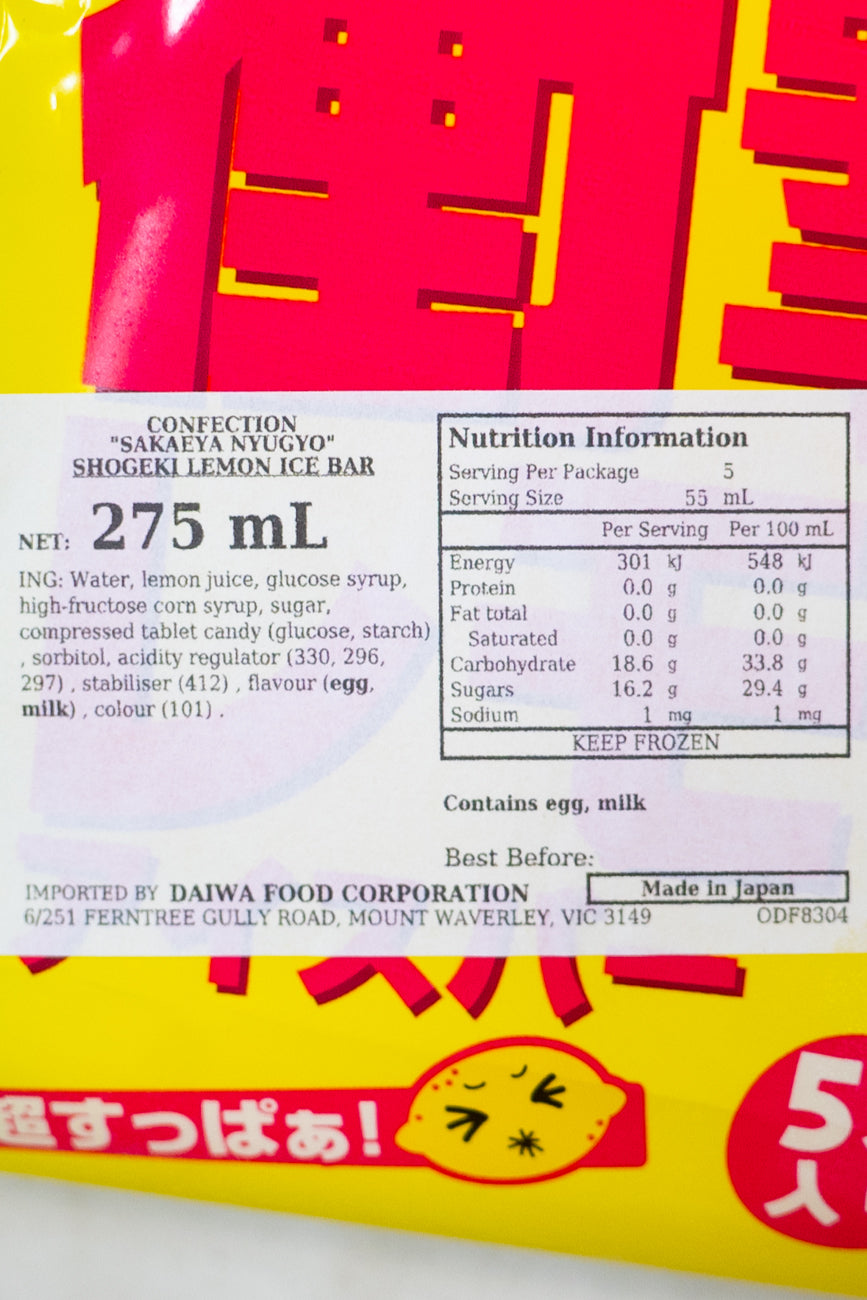 SAKAEYA Shogeki Lemon Ice Bar 275ml (5pcs x 55ml)