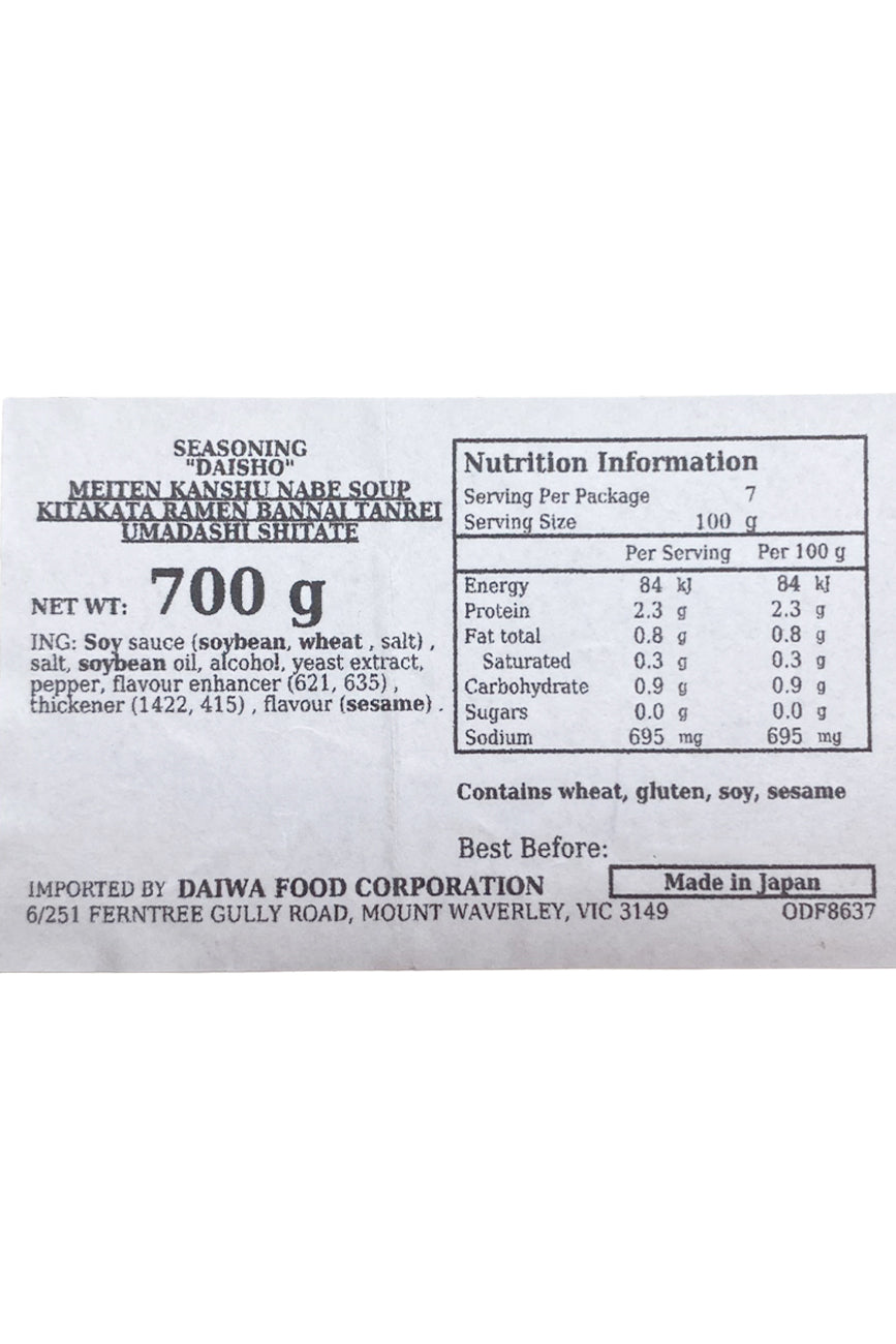 DAISHO Nabe Soup Kitakata Ramen Bannai Tanrei Umadashi 700g