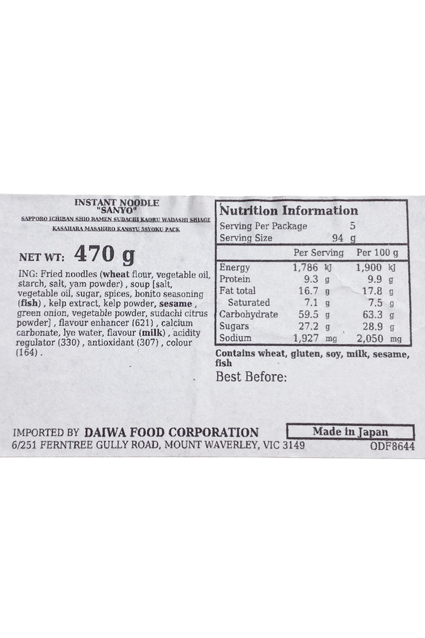 SANYO Sapporo Ichiban Shio Ramen Dashi & Sudachi 470g (5pcX94g)