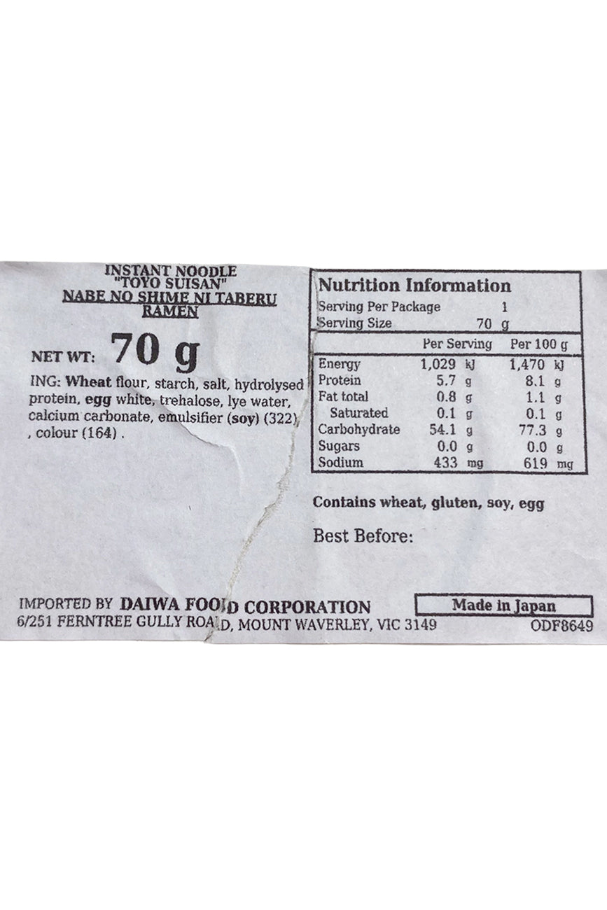 TOYO Nabe No Shime ni Taberu Ramen 70g