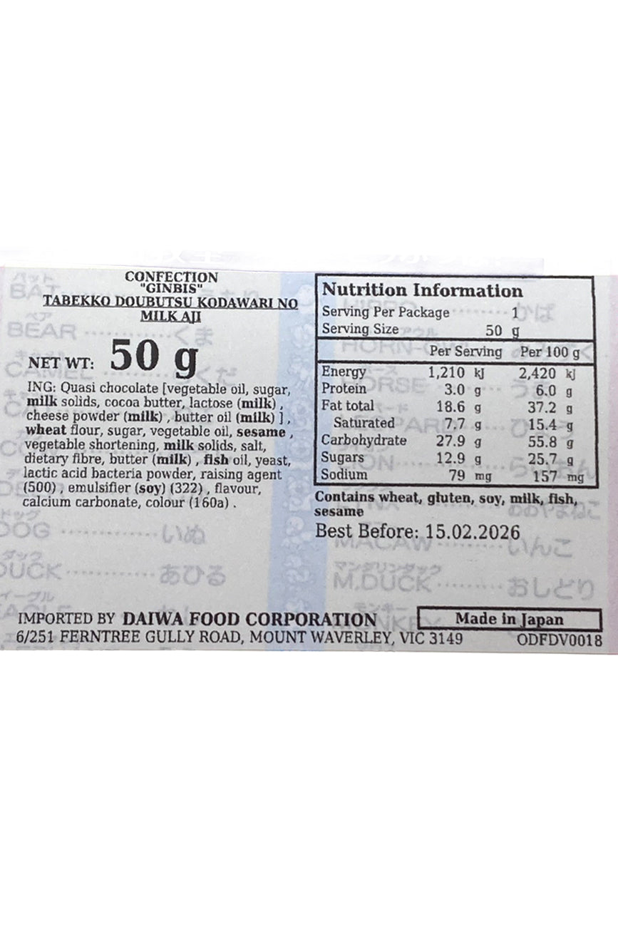 GINBISU Tabekko Doubutsu Zoo Biscuits Milk 50g